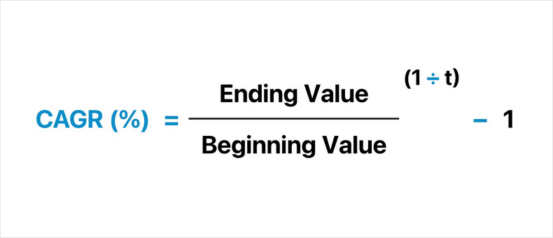 Genom formeln för Compound Annual Growth Rate (CAGR) kan vi räkna ut hur fort omsättningen växt per år. Det är viktigt att vi använder CAGR och inte tar ett medel för tillväxten år för år, då aritmetiska medel inte passar sig.