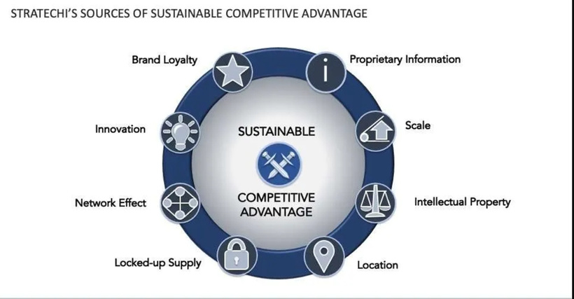 Nedan lägger vi in en illustration över Stratechi’s källor till hållbara konkurrensfördelar (vallgrav), så det går att följa med i resonemanget.