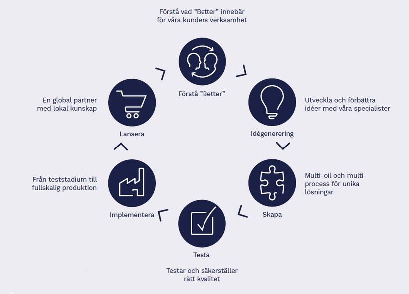 Företaget levererar dessa flexibla lösningar från egna anläggningar och innovation centers, och kan på så vis snabbt anpassa ny teknologi till branschernas krav. Kort sagt levererar AAK tekniska specialoljor som ger mervärde i kundernas produkter, snarare än att konkurrera som en ren råvaruleverantör.