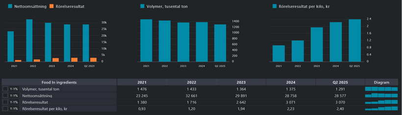 Bild: Utveckling Food Ingredients (Källa: Börsdata)