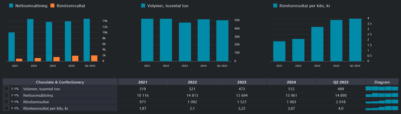 Bild: Utveckling Chocolate & Confectionary (Källa: Börsdata)