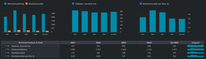 Bild: Utveckling Technical Products & Feed (Källa: Börsdata)