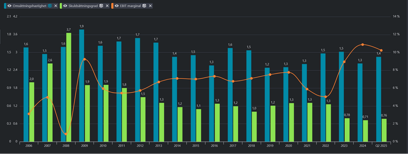 Bolaget har dessutom en låg skuldsättning, med en nettoskuld motsvarande endast 0,7 gånger EBITDA. Den finansiella styrkan ger utrymme för både strategiska investeringar och potentiella förvärv utan att äventyra balansräkningen.