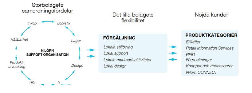 Under de senaste åren har Nilörngruppen omstrukturerats från en renodlad producent till en serviceorienterad aktör med kundfokus i centrum. Som en del av denna omvandling har bolaget byggt upp distributionsenheter i strategiska regioner som Turkiet, Hongkong, Kina, Bangladesh, Vietnam, Pakistan, Indien, England och Portugal, samt etablerat ett centrallager i Tyskland. Dessa enheter stöttar den europeiska verksamheten och säkerställer effektiv hantering av produktutveckling, inköp, lagerhållning och distribution.