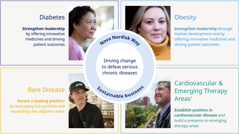 Bild: Fokusområden Novo Nordisk (Källa: Novo Nordisk Årsredovisning 2023)