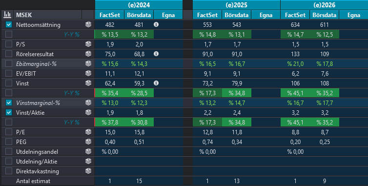 För helåret 2025E gissar Factset respektive Börsdata på VPA 2,2 – 2,4.