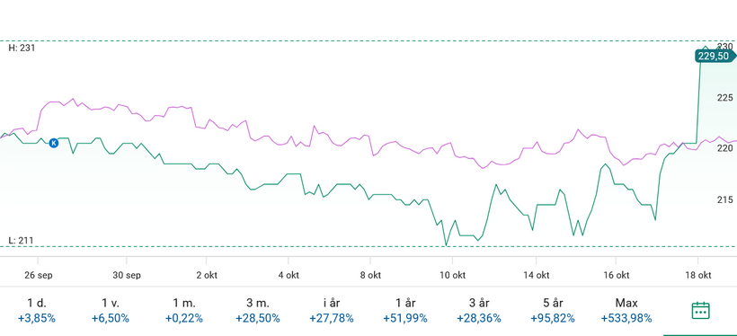Som lägst handlades bolaget till 211 SEK per aktie, vilket hade gett 9% avkastning.