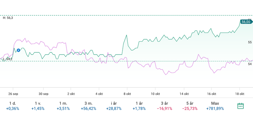 Hittills har aktien levererat 2,94% avkastning (från kursen 54,40 SEK) sedan utskicket, vilket kan jämföras med OMXSGI på -0,66%, en överavkastning med 3,6%. Jag behåller mina aktier, då det är svårt att hitta investeringar som kan leverera 5% på ca 1,5 månad.