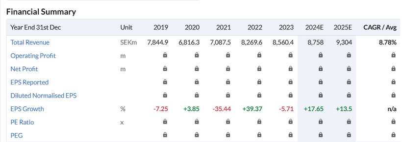 Bild: EPS% Tillväxt 2024E & 2025E för Fagerhult