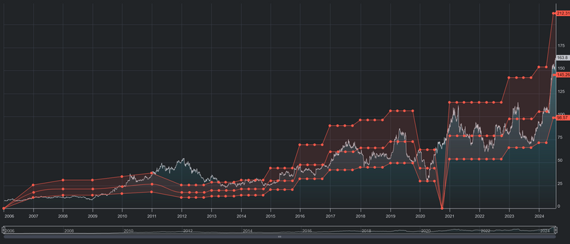 Kikar vi på hur bolaget värderats historiskt bör en rimlig kurs ligga på ca 145 SEK, kontra dagens 158 SEK.