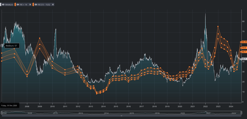 Givet att ekonomin i Europa tar fart 2025-2026 ser ett värde mellan 50-60 SEK per aktie inte omöjligt, men det är inte garanterat. Rådande estimat ligger på ca 16% vinsttillväxt 2025E & 8-9% 2026E.