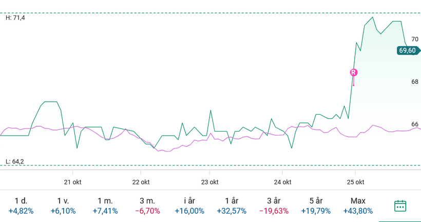 Sedan 18e oktober 2024 har aktien utvecklats väl mot index givet den starka rapporten (mer om det nedan). Aktien är upp 6,10% inkl. utdelningar jämfört med OMXSGI på 0,06%. Grattis återigen till er som följde tipset!