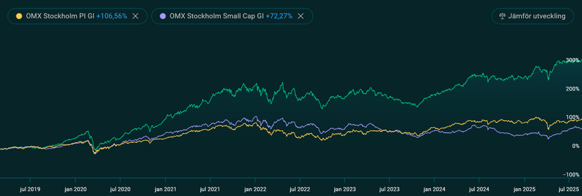 Sedan starten är VQM-portföljen upp 312,04% inkl. återinvesterad utdelning. För jämförelse har breda Stockholmsbörsen (OMXSGI) levererat 105,56% under samma period, och OMXS Small Cap GI levererat 72,27% avkastning.